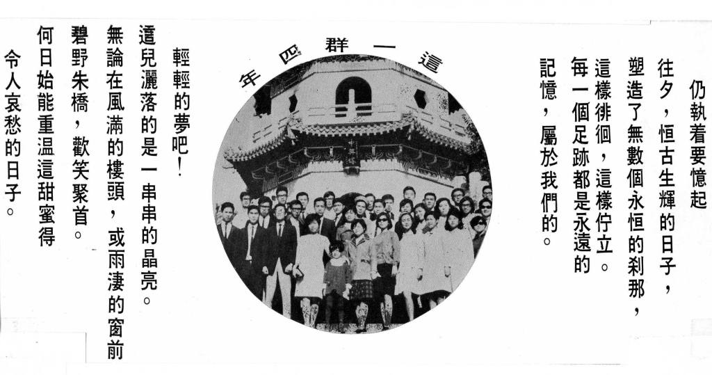 我們都還有幸能在畢業這麼多年後試著重溫舊日的時光,可是巳有好幾位老同學巳先離我們而去。朱宏揚搬來舊金山後,我們比較時有聯絡,記得他失蹤前一陣常打電話給我及我老公抱怨醫生為何不治療他胃的毛病而把他當精神病患者看待。我還記得我帶了一束鮮花代表班上同學在淒風中參加了他的葬禮,看着大學時大家一夥郊遊的相片只覺得世事太難料。